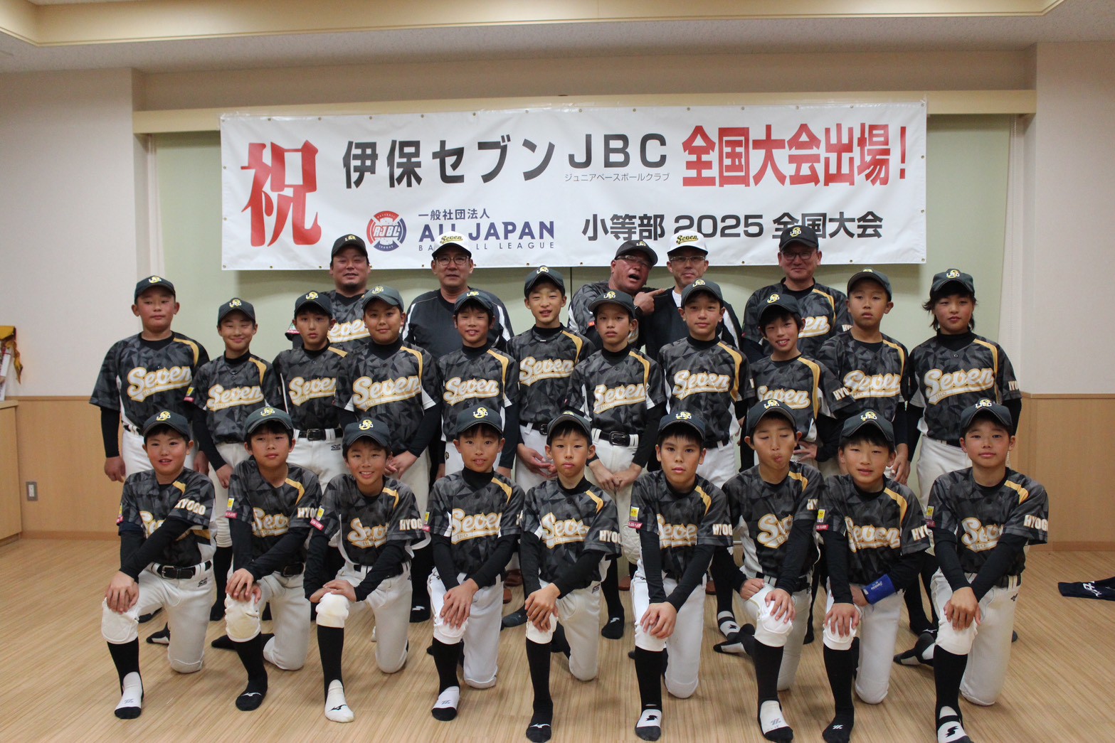 全国から43チームが頂点を目指し、伊保セブンは初戦(第2回戦)愛知県江南市営グラウンドで木津ブライトに8対4で勝利。嬉しい1勝目を挙げました。